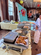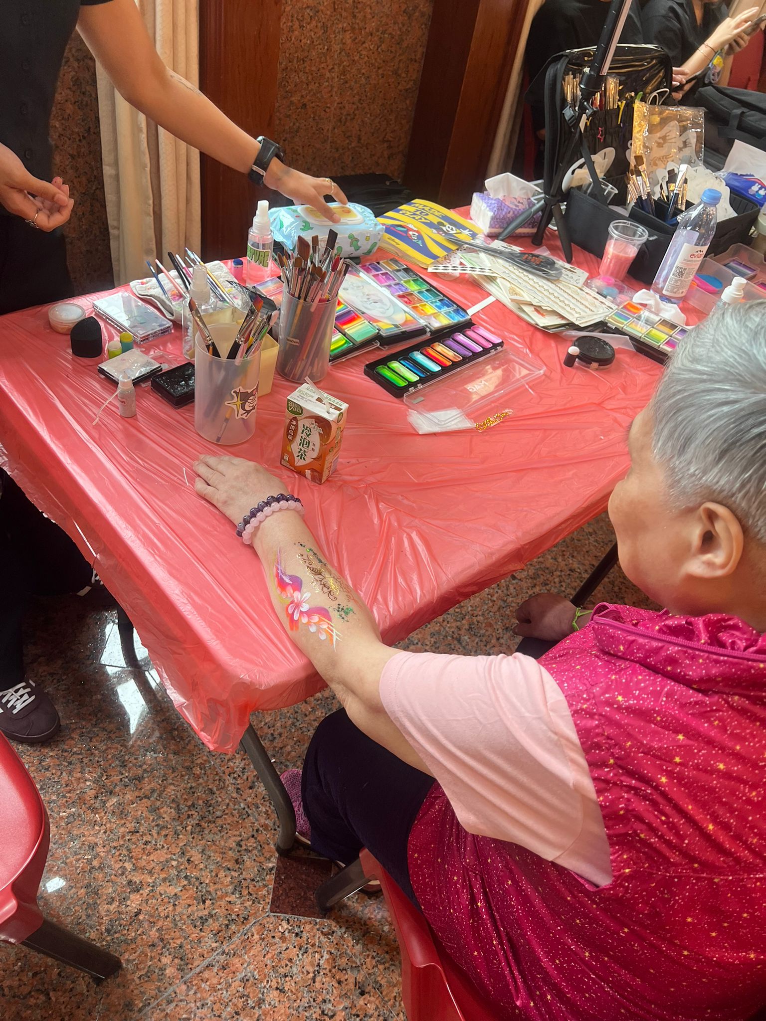 會場還提供了美味的素菜、魔術表演、唱歌表演、猜燈謎遊戲、人體繪畫和自製非遺漆扇攤位!我們的義工團隊更充當熱情的啦啦隊,當每位佳麗和猛男(院友)完成打扮後,我們一起歡呼,營造出熱烈的氛圍。當長者們與家人們合照的瞬間,場面既溫馨又歡樂,大家都希望能永遠珍藏這些美好時刻。