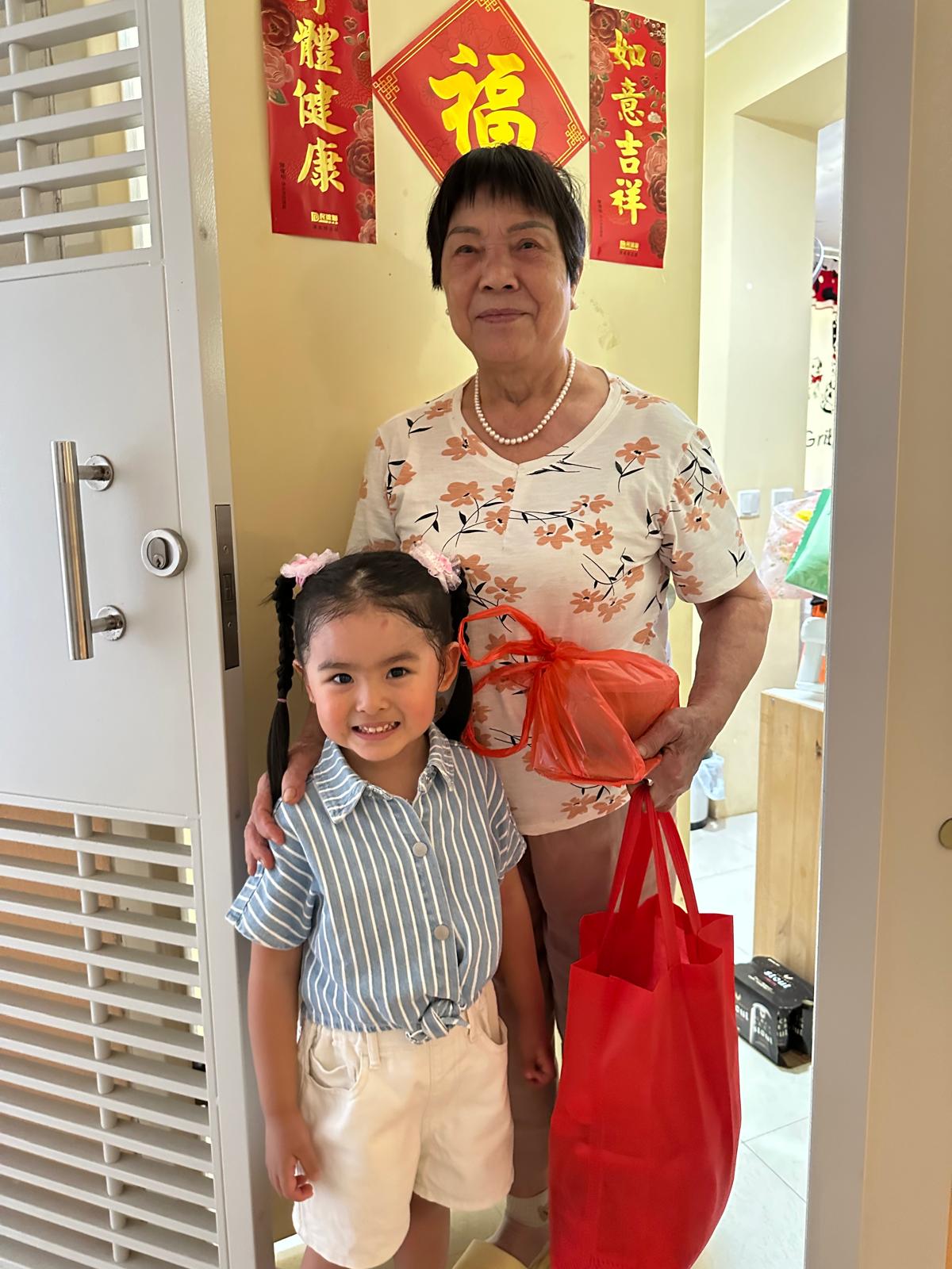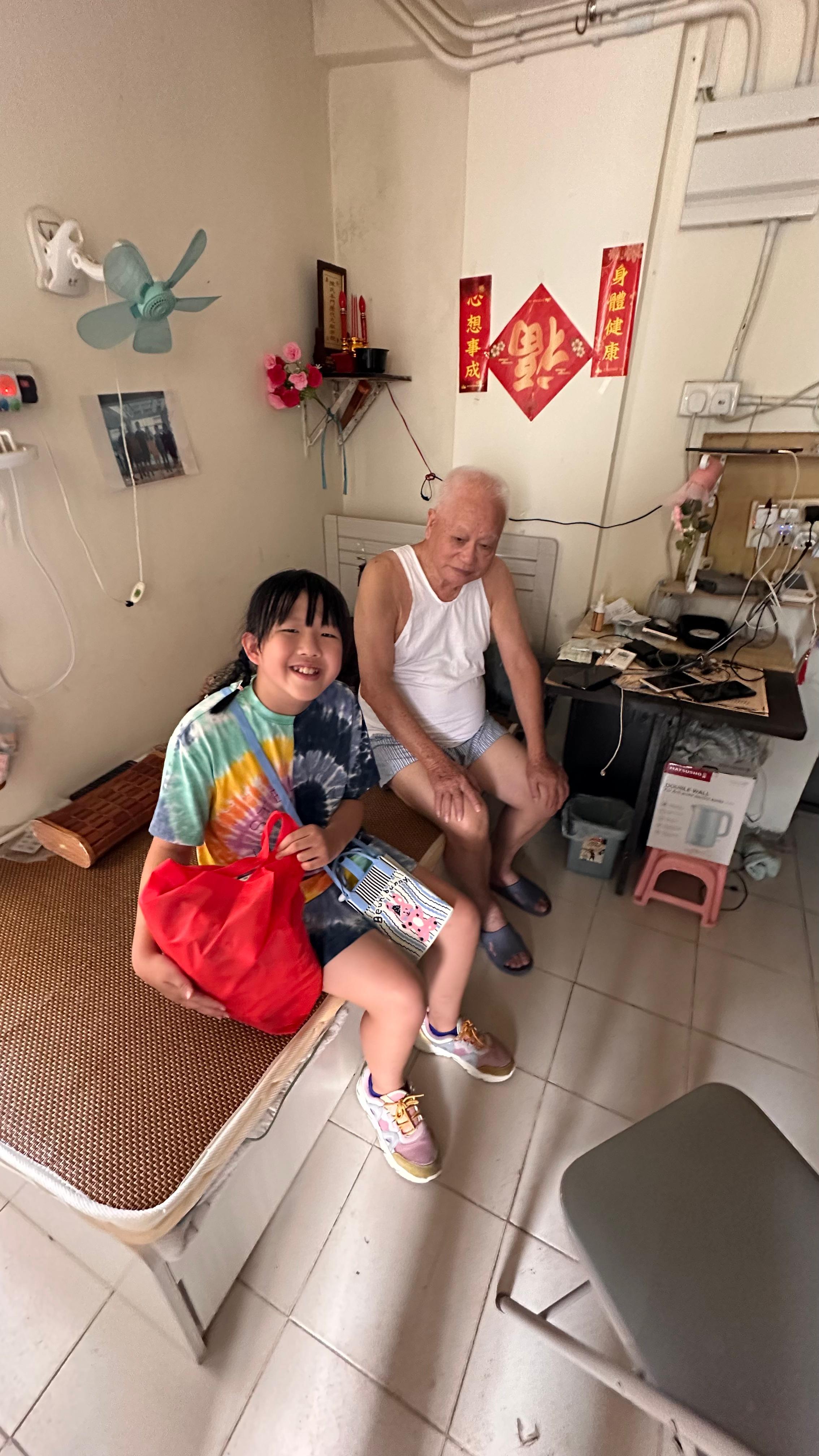 每组义工家庭负责探访2户长者,有部份探访唐楼的组别需要行一些楼梯呢。除送上爱心汤水和福袋外,其实小朋友也是老人家们的心灵鸡汤,很多长者见到有小朋友探访也份外高兴。其实这也是我们今次邀请小朋友一齐参与既目的。很感恩活动当日的天气十分好(虽然有点酷热),但大家都觉得这次是很好的体验,希望下次可以再参与其中。